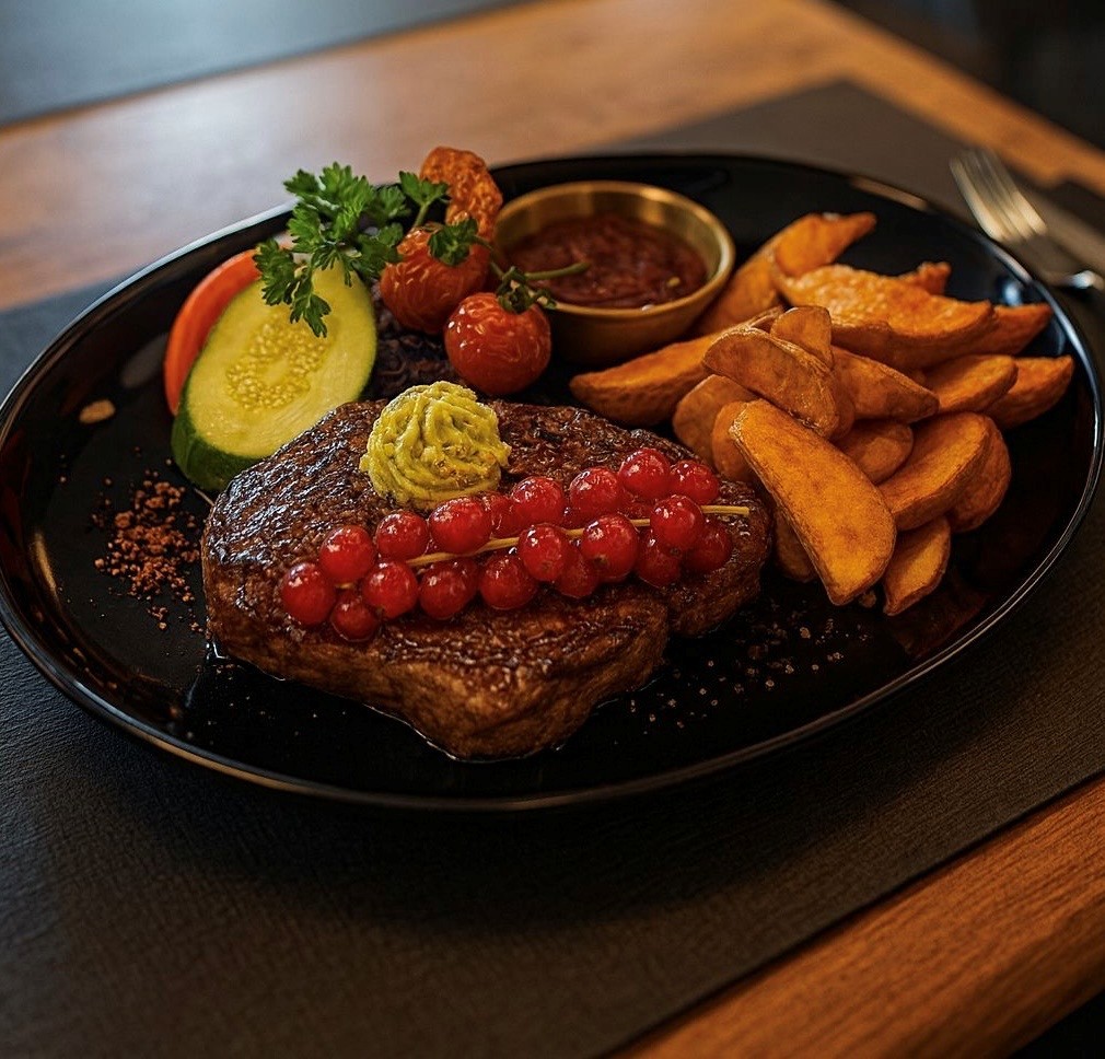 Argentinisches Rindfleisch 300 Gramm, Grillgemüse, Kartoffeln, Kräuterbutter
