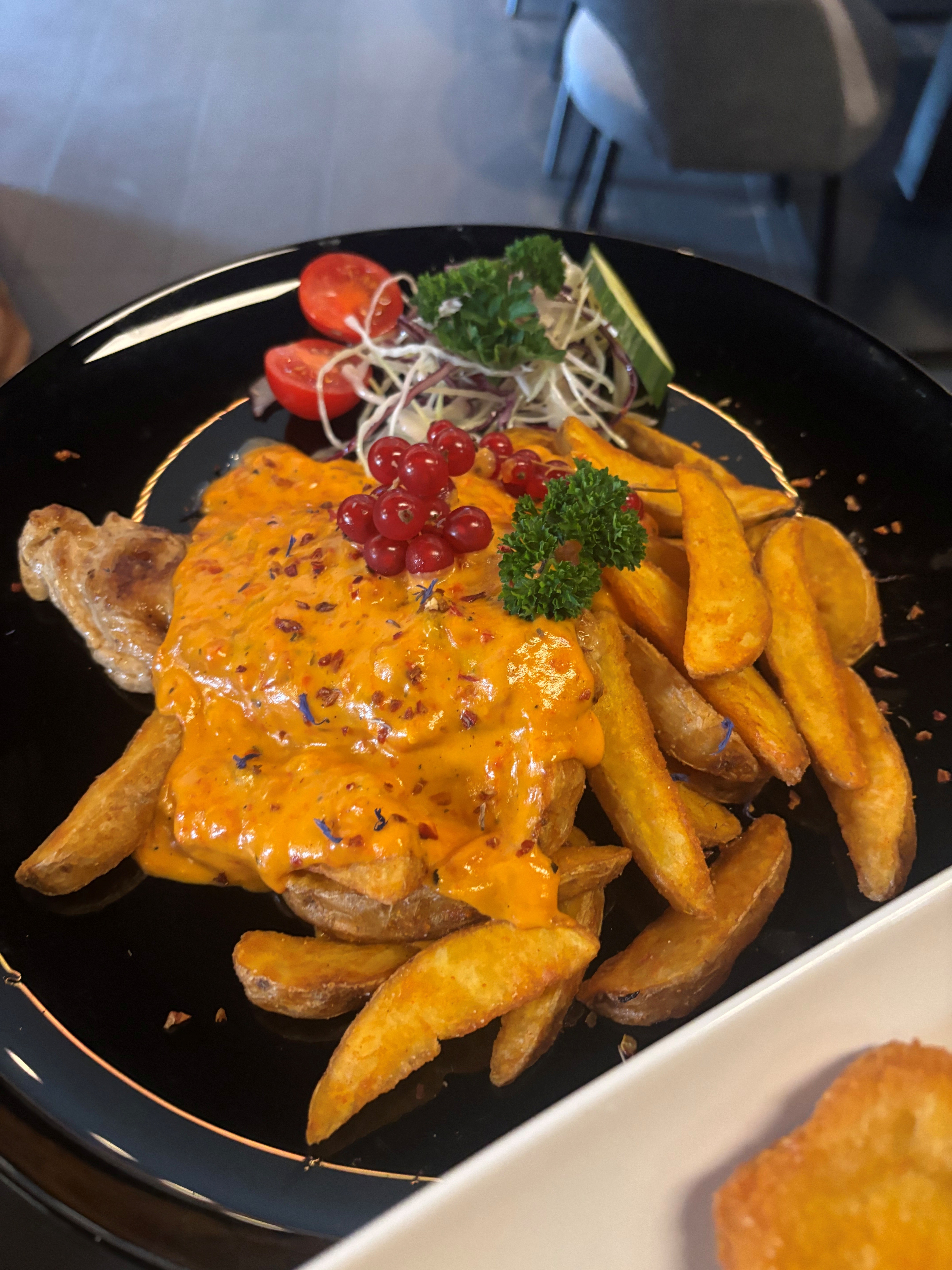 Pouletbrust, Kartoffeln, Paprika Sauce
